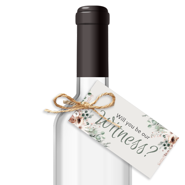 Ontwerp een bohemian labeltje met bloemen. Met dit getuige vragen kaartje vraag je geliefden of ze jou getuigen willen zijn. Bindt het labeltje aan een kadootje en vraag zo op een originele manier getuigen.