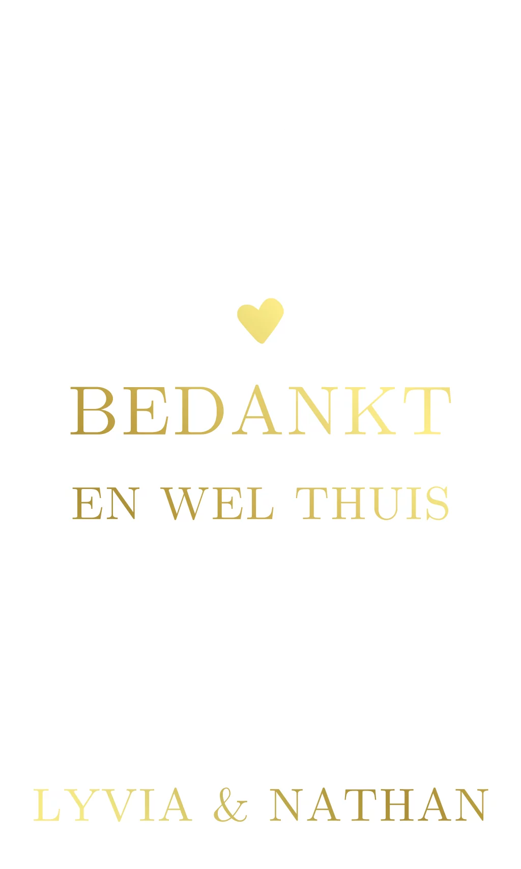 Dit bedankt labeltje met goudfolie maakt deel uit van een trouwkaartenset.