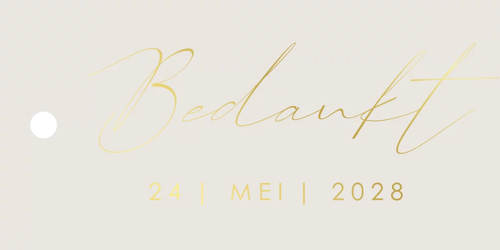 Ontwerp een labeltje voor bij bedankjes. Dit is een labeltje met tekst in goudfolie. Strik het labeltje vast aan bedankjes of het bedankkaartje.* Ontwerp in stijl van de kaart