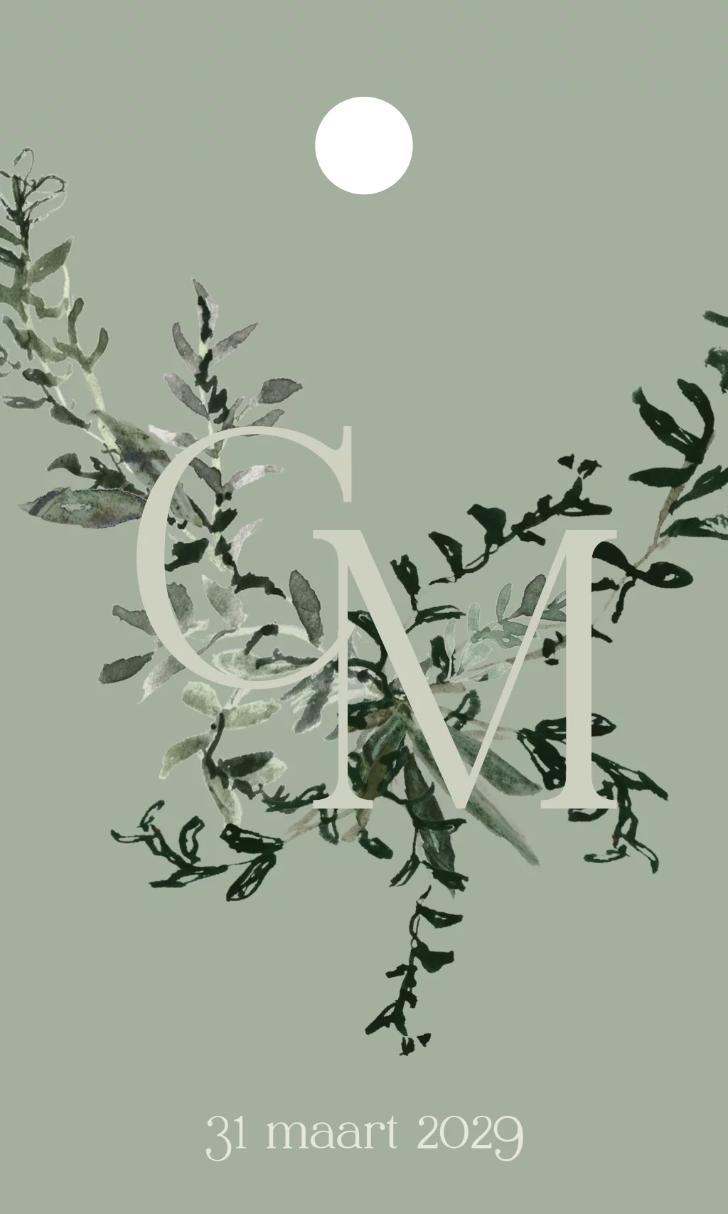 Ontwerp een labeltje voor aan een goodiebag. Dit is een labeltje met jullie logo en eucalyptusblaadjes. Je kan het bruiloft labeltje natuurlijk ook ergens anders voor gebruiken. Bijvoorbeeld bij bedankjes of de trouwkaart.* Ontwerp in stijl van de kaart