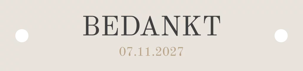 Ontwerp een labeltje voor aan de bedankjes. Dit is een liggend labeltje met twee gaatjes. Zo maak je het gemakkelijk vast aan de bedankjes.