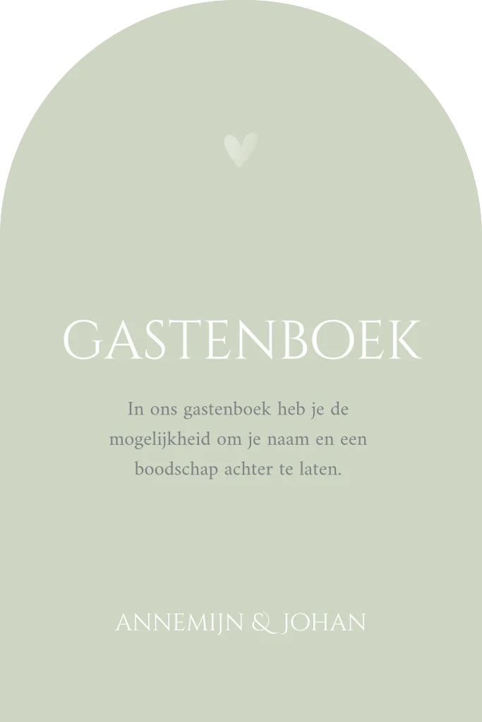 Bestel een handig informatiebordje bij het gastenboek. Zo weten de gasten wat er van hen verwacht wordt. Dit is een bordje in boogvorm en met een klein hartje.