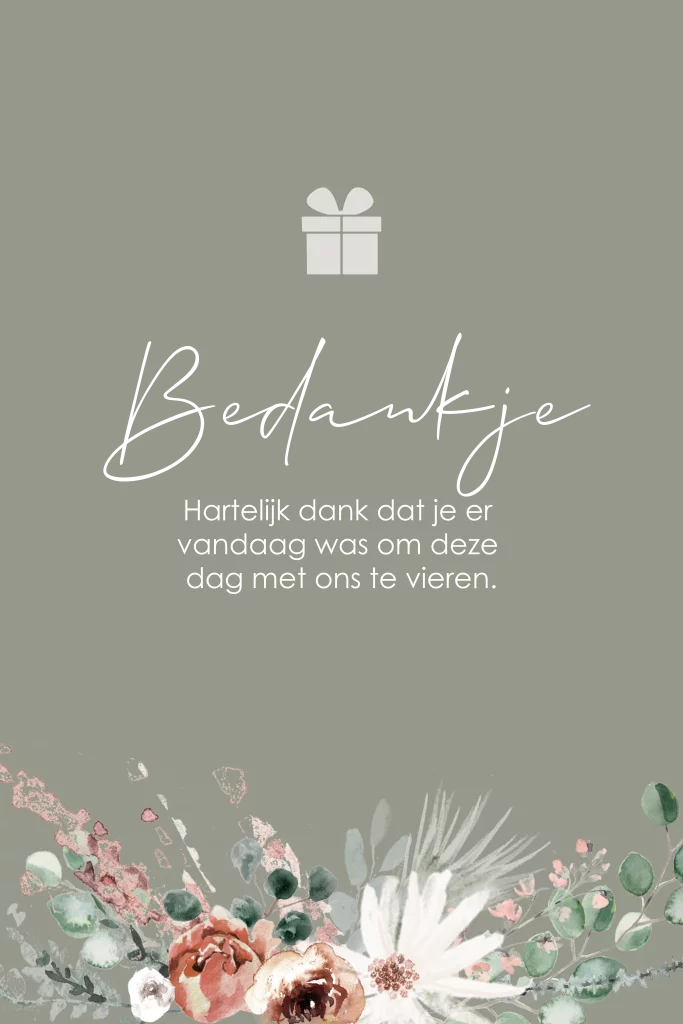 Dit bedankbordje met goudfolie maakt deel uit van de trouwkaarten set Hanna.