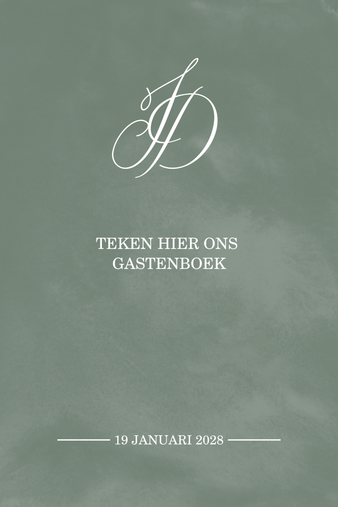 Dit bordje bij gastenboek maakt deel uit van een trouwkaartenset.