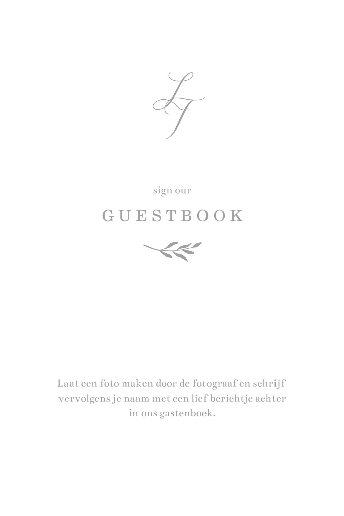 Ontwerp een handig bordje voor bij het gastenboek. Dit is een klassiek bordje met takje en logo van jullie initialen.| Totaalprijs: 0 |