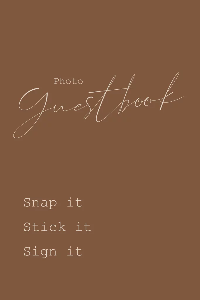 Ontwerp een bordje voor bij het gastenboek. Dit is een stijlvol bordje in koperkleur.