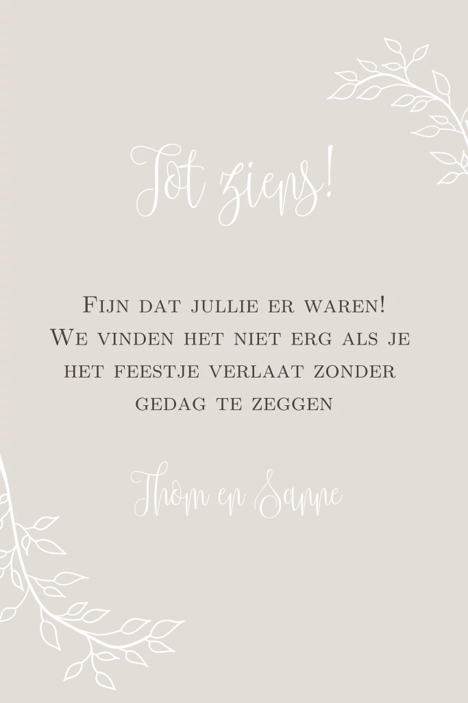 Dit klassieke bordje voor afscheid maakt deel uit van de trouwkaarten set Sanne.