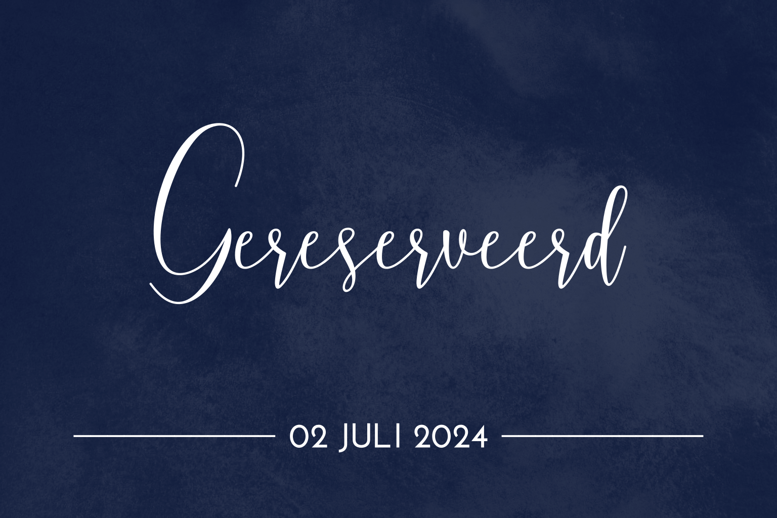 Dit donkerblauwe gereserveerd kaartje maakt deel uit van een trouwkaartenset.