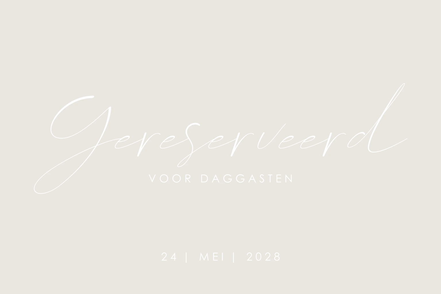Willen jullie op je bruiloft stoelen reserveren voor gasten? Ontwerp dan een gereserveerd kaartje in dezelfde stijl als je trouwkaart. Dit is een stijlvol gereserveerd kaartje met goudfolie. In de editor maak je er eenvoudig een persoonlijk kaartje van.