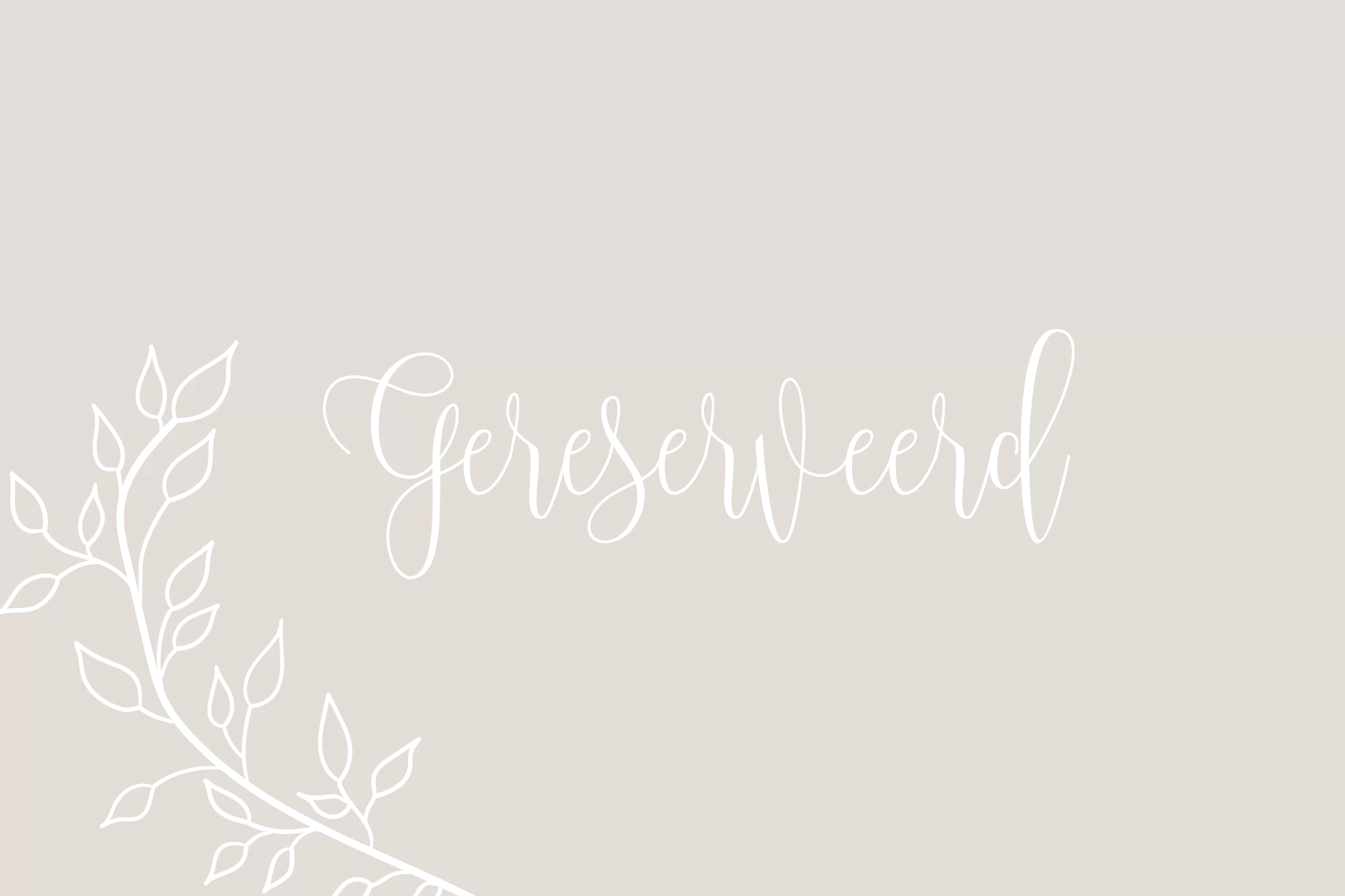Ontwerp een gereserveerd kaartje in dezelfde stijl als jullie trouwkaart. Dit is een gereserveerd kaartje met een illustratie van takjes in roséfolie. Personaliseer het kaartje eenvoudig in de editor. Het kaartje heeft vier gaatjes, in elke hoek eentje. Zo kan je het kaartje handig ophangen aan een stoel.| Totaalprijs: 0 |