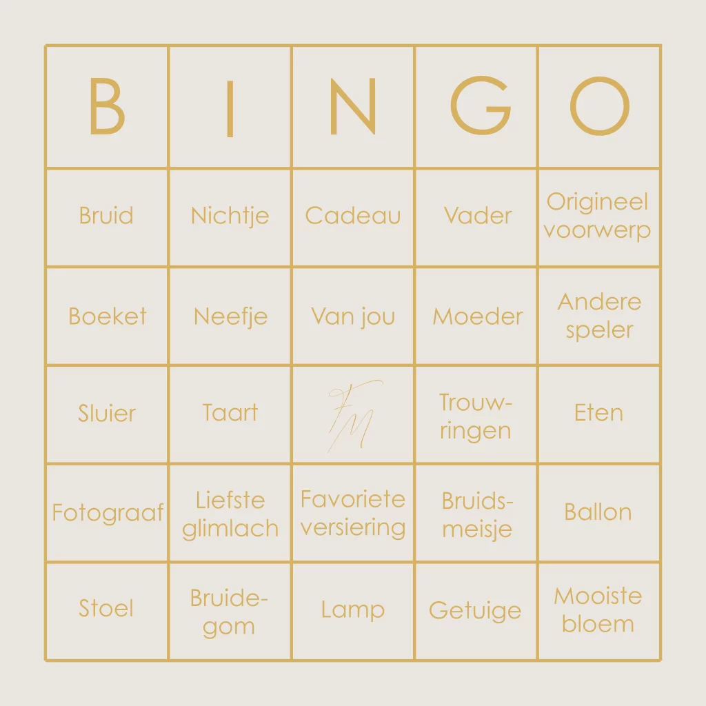 Deze originele bingokaart maakt deel uit van de Natural Copper trouwhuisstijl.