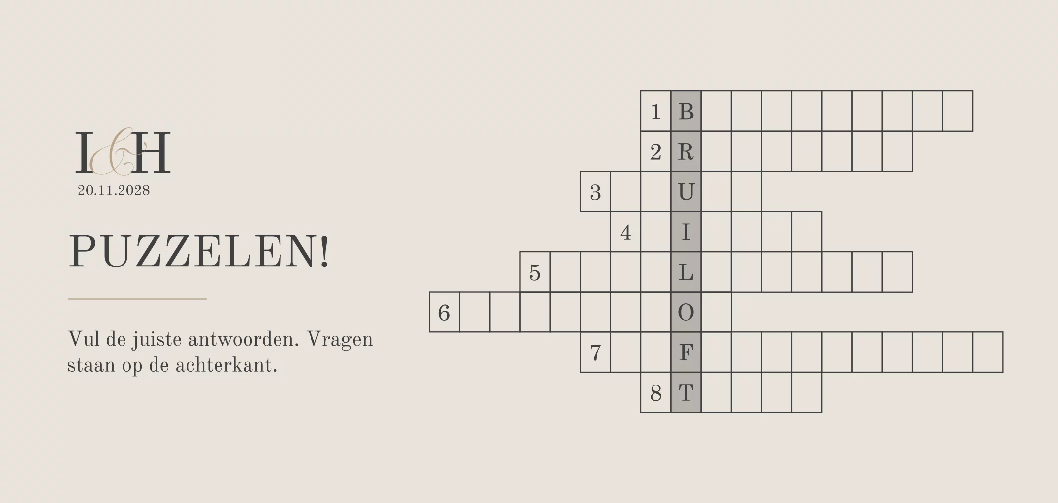 Met deze puzzel vermaken de kinderen zich de hele trouwdag. Deze puzzel in beige past bij een trouwkaart in dezelfde stijl.