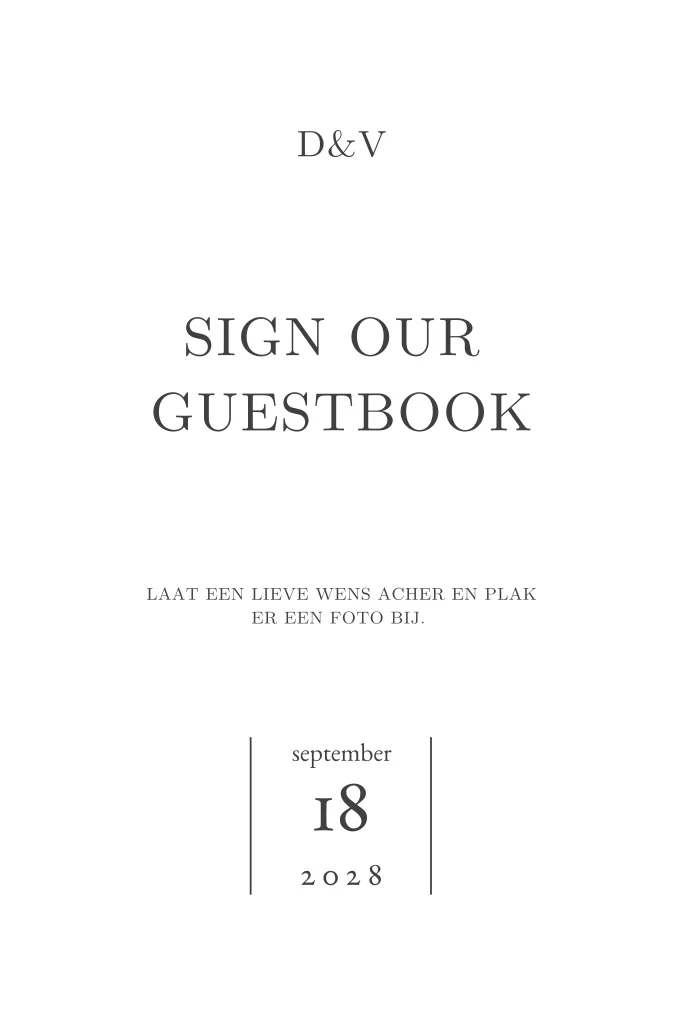 Dit stijlvolle gastenboek bordje maakt deel uit van een trouwkaartenset.