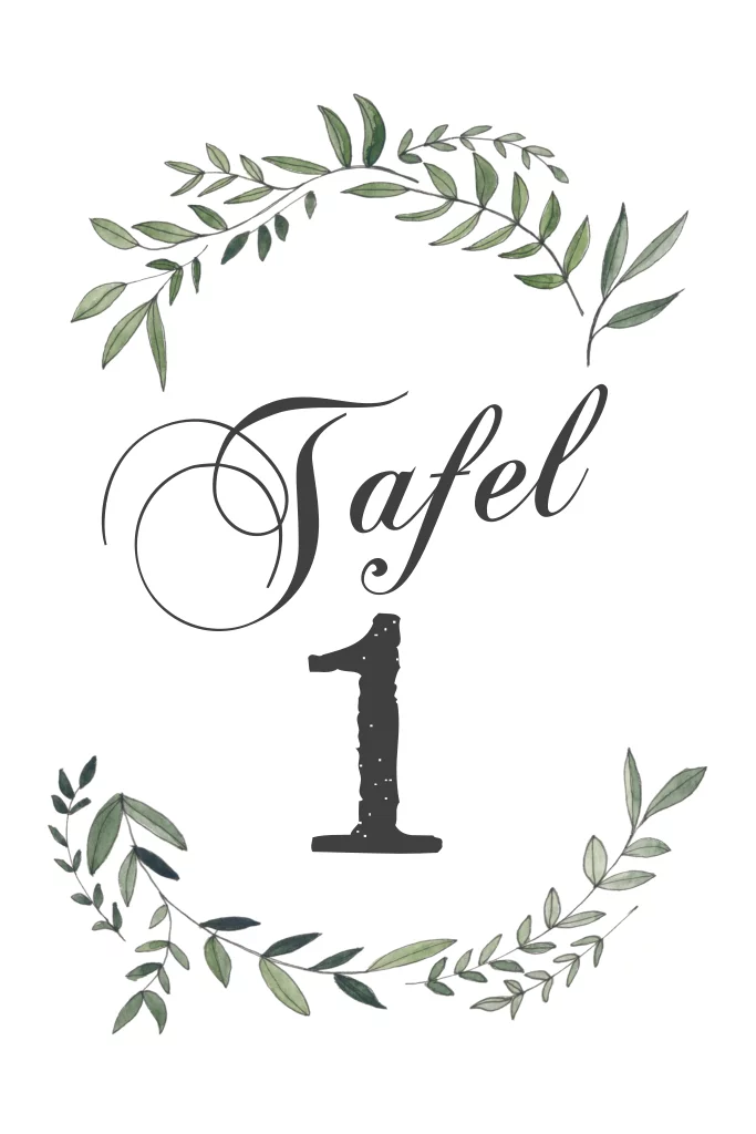 Tafelnummer voor jullie diner met blaadjes en takjes
