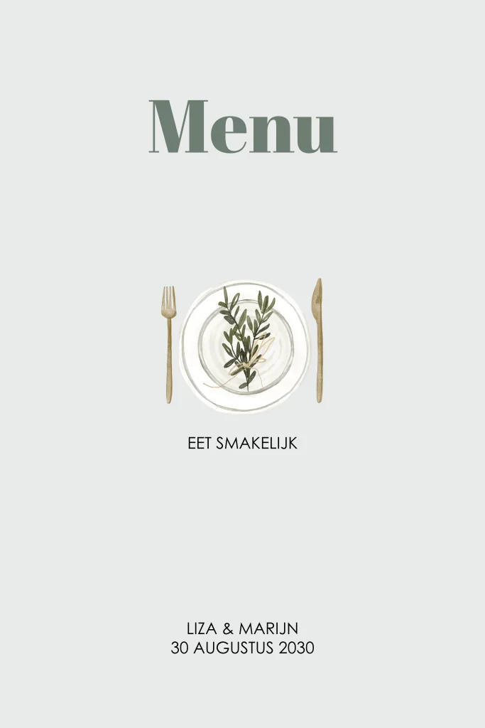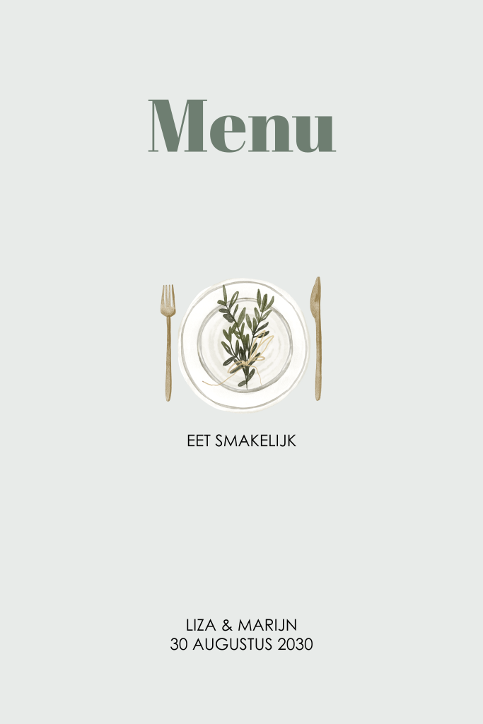 Deze trendy menukaart maakt deel uit van de trouwkaarten set Liza.