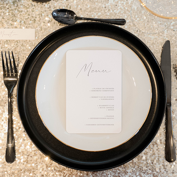 Maak voor het diner op jullie bruiloft een stijlvolle menukaart met ronde hoeken.