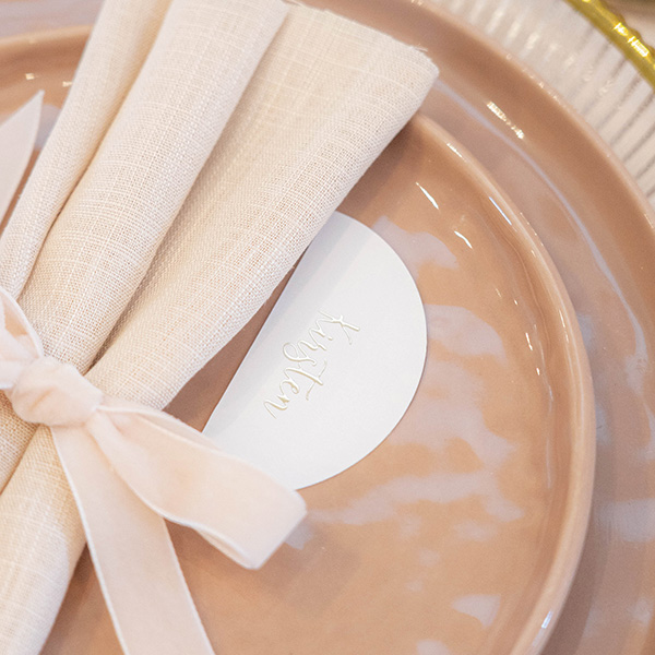 Deze naamkaartjes maken deel uit van een trouwkaartenset.