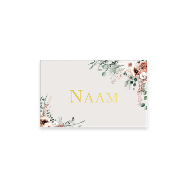 Deze bohemian naamkaartjes maken deel uit van de trouwhuisstijl Bohemian Gold.
