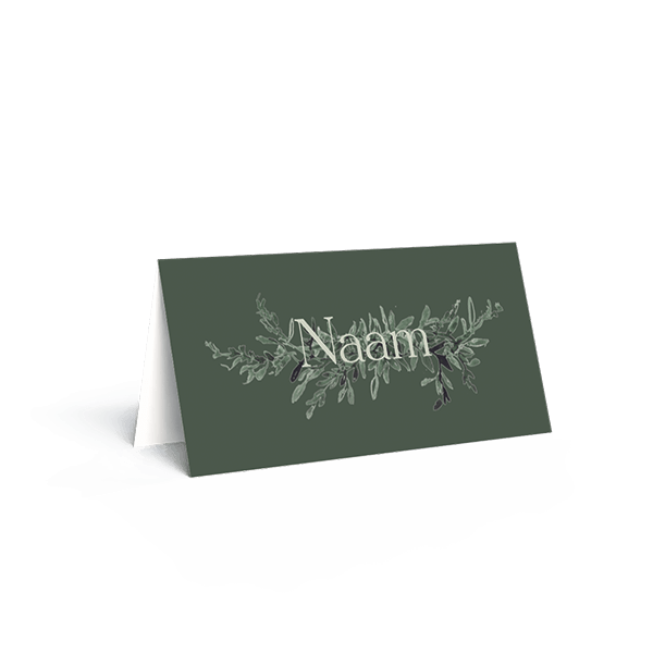 Bestel naamkaartjes diner voor jullie bruiloft. Dit zijn naamkaartjes die je dubbel kan vouwen en zo neerzet op de tafel. Bestel ze in kleuren die passen bij jullie menukaart en tafelschikkingbord.