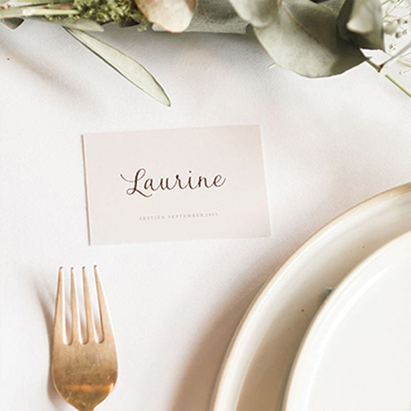Deze klassieke naamkaartjes maken deel uit van een trouwkaartenset.