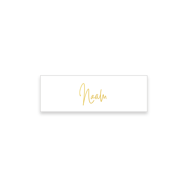 Maak eens een ander naamkaartje: een smal strookje met de naam. Leuk om onder het bord te steken o.i.d. Je kunt 36 namen invullen in de kaartopmaker. Maak de naamkaartjes in de stijl en sfeer die past bij jullie bruiloft.| Totaalprijs: 0 |