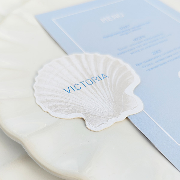 Deze naamkaartjes maken deel uit van een trouwkaartenset.