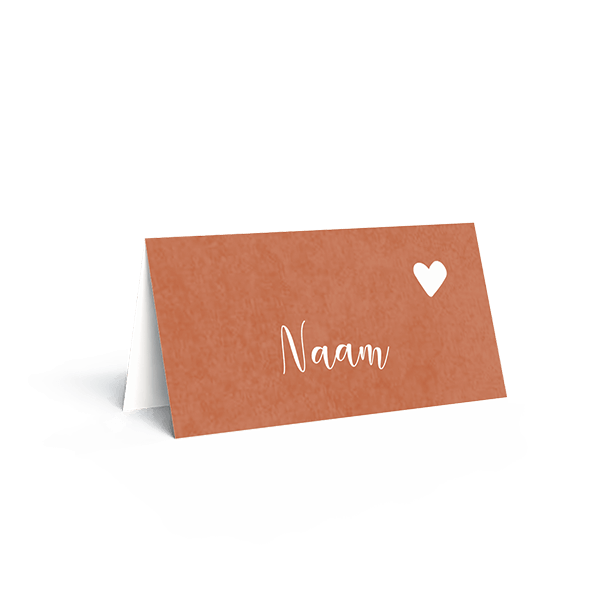 Deze naamkaartjes zijn 8 bij 4cm groot als ze gevouwen zijn. Je mag ze zelf dubbel vouwen. Deze naamkaartjes worden uit één vel gemaakt. In de kaartopmaker kun je de namen aanpassen en passend maken bij de trouwkaartenset voor jullie bruiloft.| Totaalprijs: 0 |