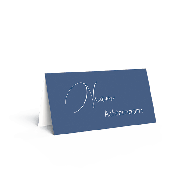 Bestel handige naamkaartjes voor tijdens jullie bruiloftsdiner. Dit zijn klassieke naamkaartjes in blauwe tint, passend bij een Toile de Jouy trouwkaart.