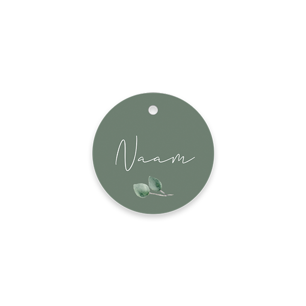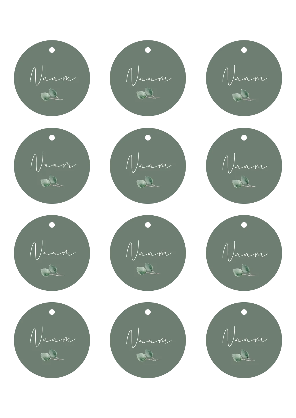 Ontwerp labeltjes voor aan glas om te onthouden welke van jou is. Dit zijn ronde labeltjes met een blaadje. Voeg in de editor de juiste namen in.| Totaalprijs: 0 |