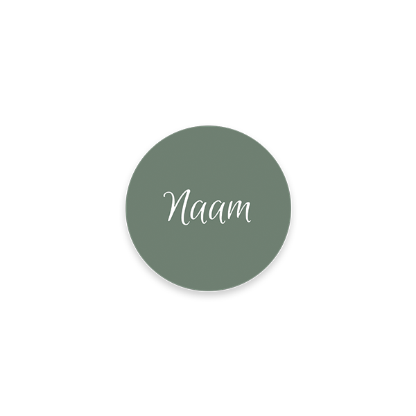 Passend bij de menukaart maak je ronde naamkaartjes per naam. De stijl van de menukaart komt ook weer terug in dit kaartje. In de editor vul je eenvoudig de namen in.