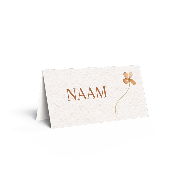 Bestel naamkaartjes bruiloft als finishing touch voor je bruiloftsdiner. Dit zijn dubbelgevouwen naamkaartjes met bloemen. Je vouwt zelf de tafelkaartjes dubbel.