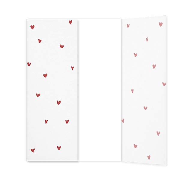 Maak een originele uitnodiging met deze kalkpapier omslag met rode hartjes. Een kalkpapier omslag schijnt een klein beetje door en kun je leuk om de trouwkaart vouwen en vastbinden met een touwtje, lakzegel, etc.