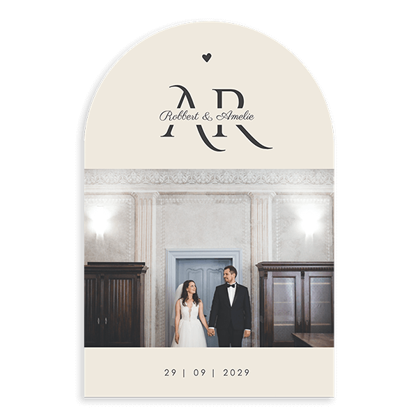 Ontwerp een bedankkaart bruiloft om te versturen naar gasten van jullie trouwdag. Dit is een klassieke bedankkaart met foto in beige. Op de voorkant upload je jullie mooiste trouwfoto. Op de achterkant voeg je zelf een lief tekstje toe waarin je jullie gasten bedankt voor hun aanwezigheid en bijdragen aan jullie trouwdag.