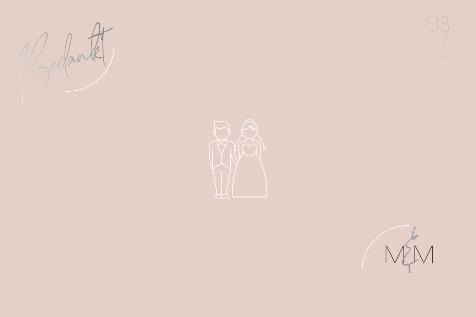 Deze originele bedankkaart maakt deel uit van een trouwkaartenset.