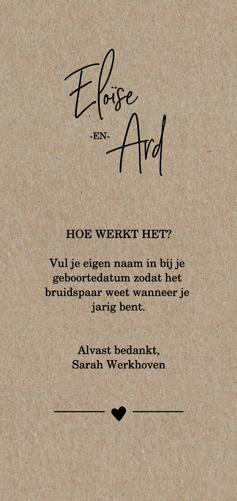 Een bordje in kraft voor bij de kalender als gastenboek. Laat op dit bordje weten hoe de kalender werkt en wat de gasten kunnen doen. Dit bordje past bij een kalender in dezelfde stijl.