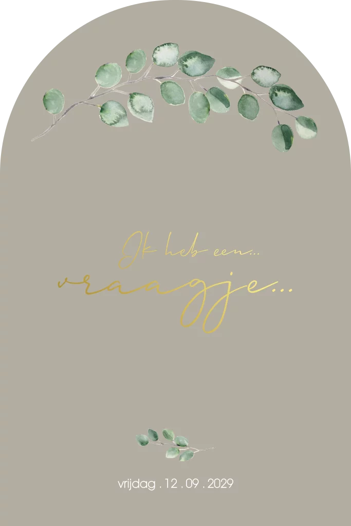 Deze getuigen vragen kaart in boogvorm maakt deel uit van een trouwkaartenset.
