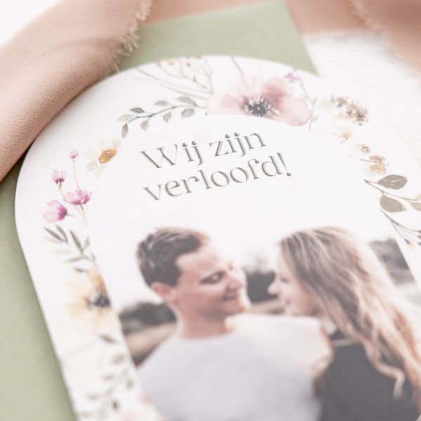 Deze romantische verlovingskaart maakt deel uit van de trouwkaarten set Malou.