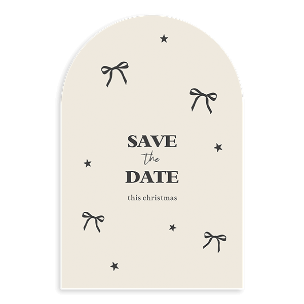 Verstuur deze kerst een liefdevolle Save the Date kerstkaart met hippe strikjes en sterretjes. Je kunt de kleuren aanpassen naar je eigen wens. Met deze Save the Date als kerstkaart start je de leukste voorbereidingstijd van jullie bruiloft want iedereen weet de trouwdatum.