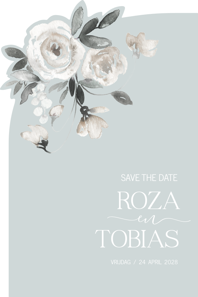 Deze originele Save the Date kaart met bloemen maakt deel uit van een trouwkaartenset.