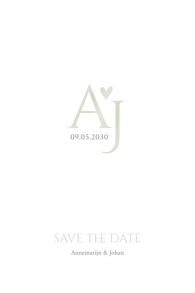 Deze Save the Date bruiloft met logo maakt deel uit van een trouwkaartenset.
