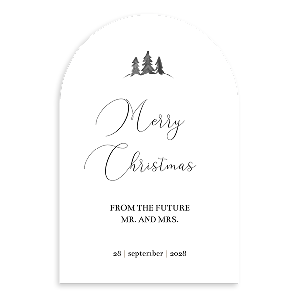 Save the Date kerstkaart in boogvorm met boompjes