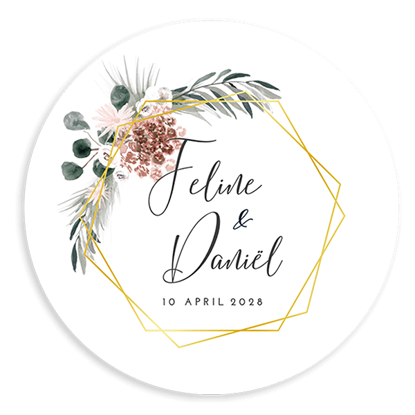 Deze ronde trouwkaart met goudfolie maakt deel uit van een trouwkaartenset.