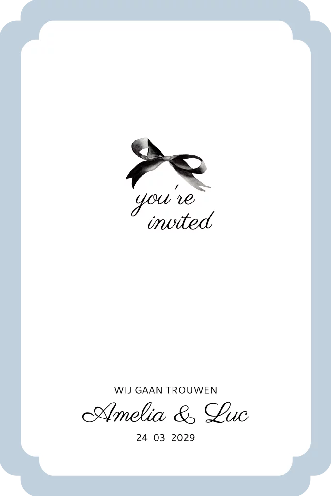 Deze chique uitnodiging met strikje maakt deel uit van een trouwkaartenset.