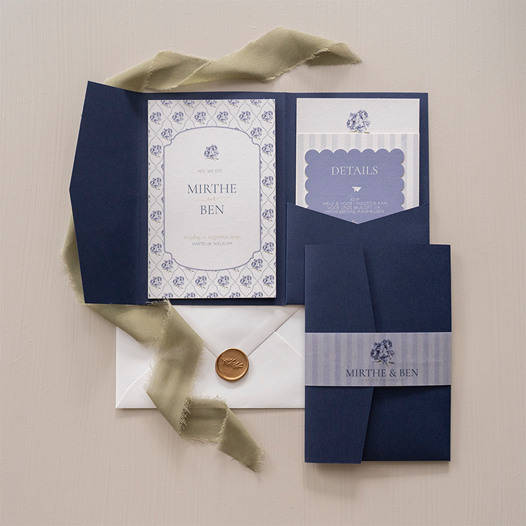 Deze pocketfold trouwkaart in vintage stijl maakt deel uit van een trouwkaartenset.