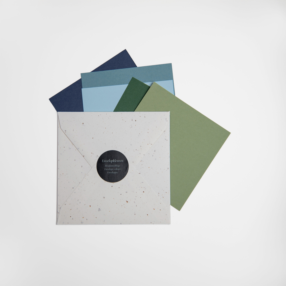 Twijfel je over de envelopkleur? Met deze stalenset heb je een overzicht van 30+ kleuren, zodat je eenvoudig de perfecte match kunt vinden bij jouw kaart. Van hippe kleuren tot metallic – deze set helpt je bij het maken van de keuze.