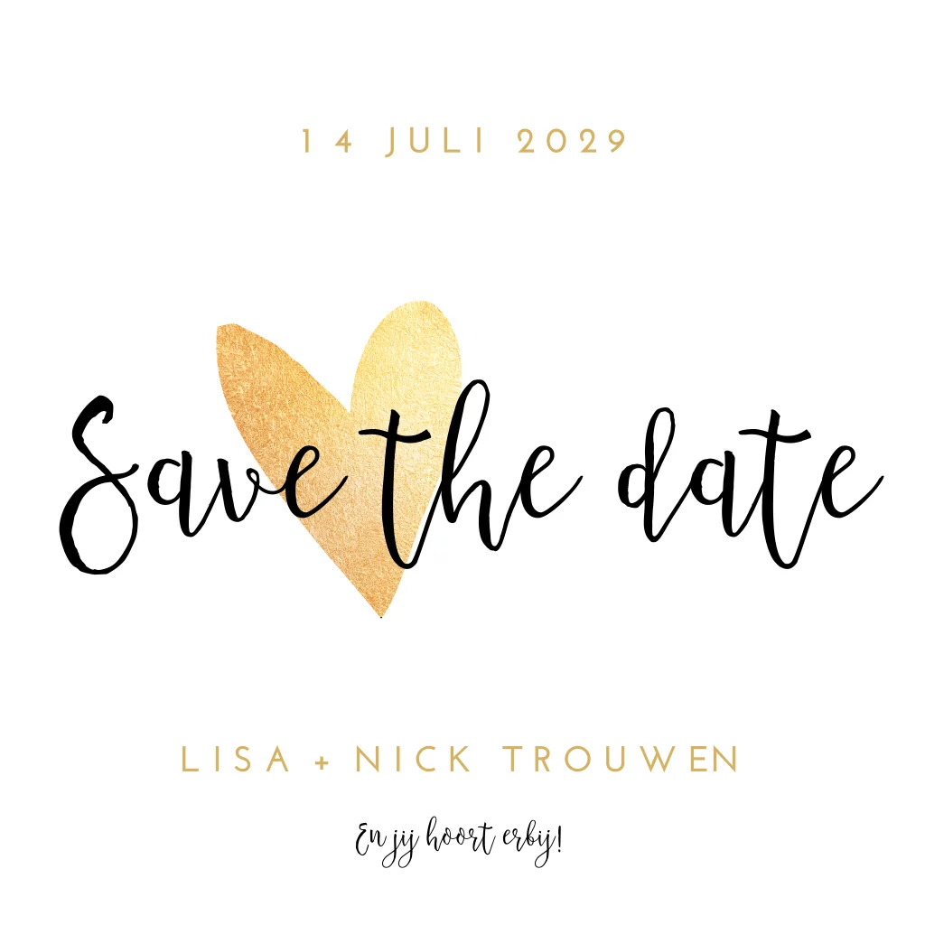 Save the Date kaart met gouden hartje