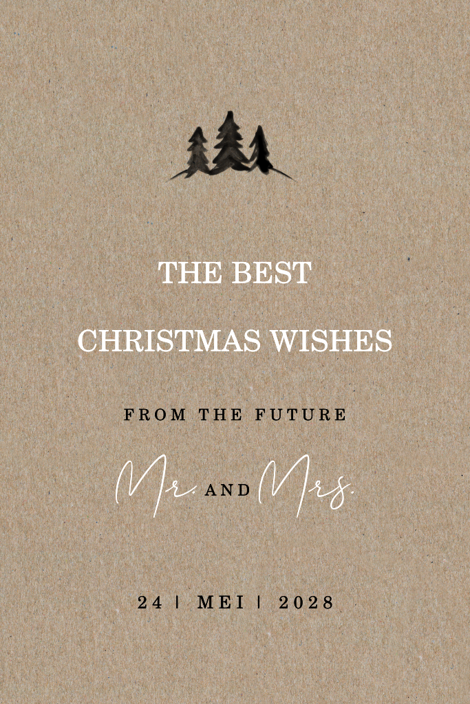Deze kerst Save the Date kaart wordt gedrukt op echt kraftpapier. Een vintagelook die past bij de kerstsfeer. De kaart wordt voorzien van ronde hoeken. Je kunt eenvoudig de teksten aanpassen en daarna een proefdruk bestellen.