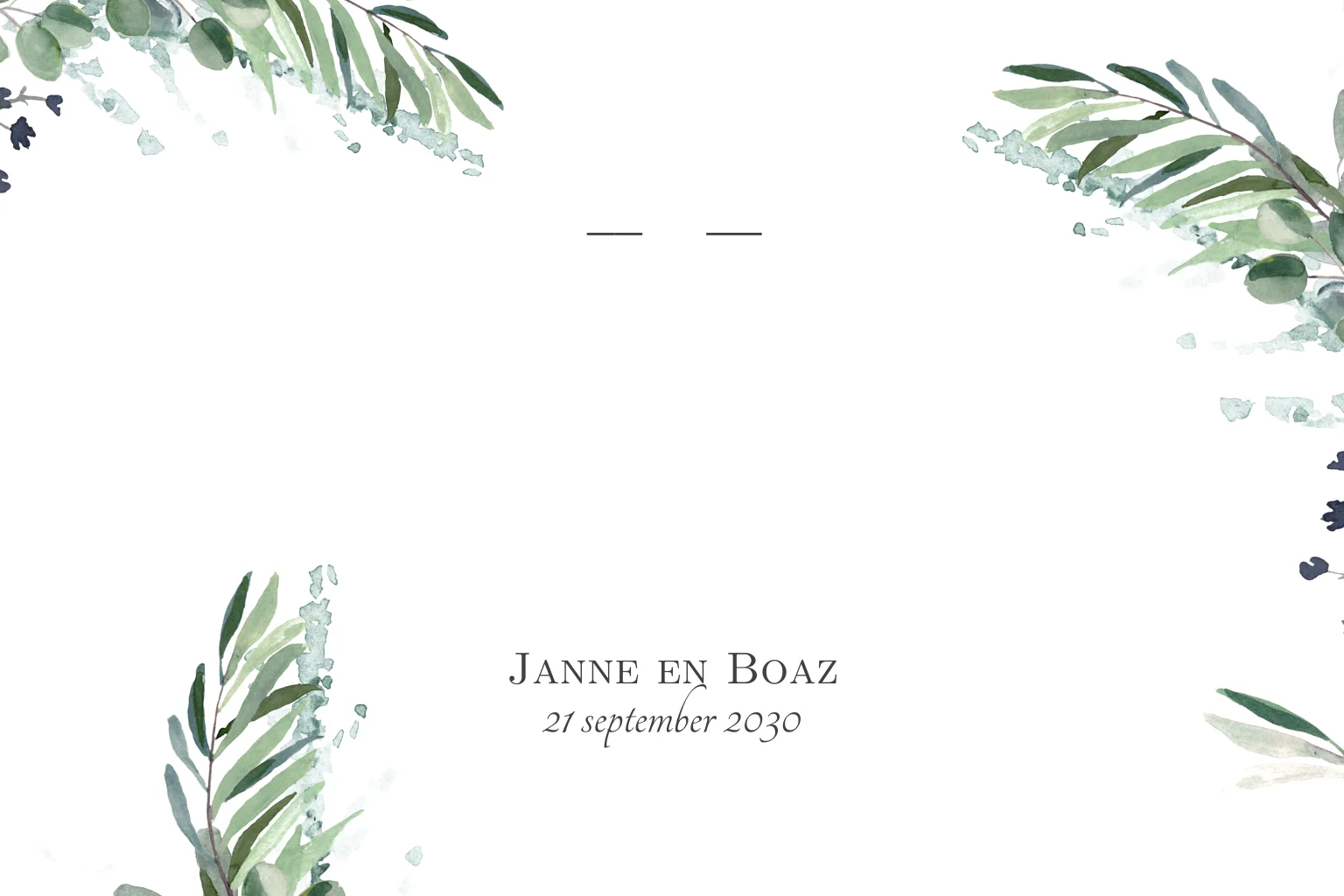 Deze Save the Date kaart past bij de trouwkaart 'TROUWKAART MET EUCALYPTUS TAKJES EN GOUDFOLIE'.Totaalprijs: 0 |