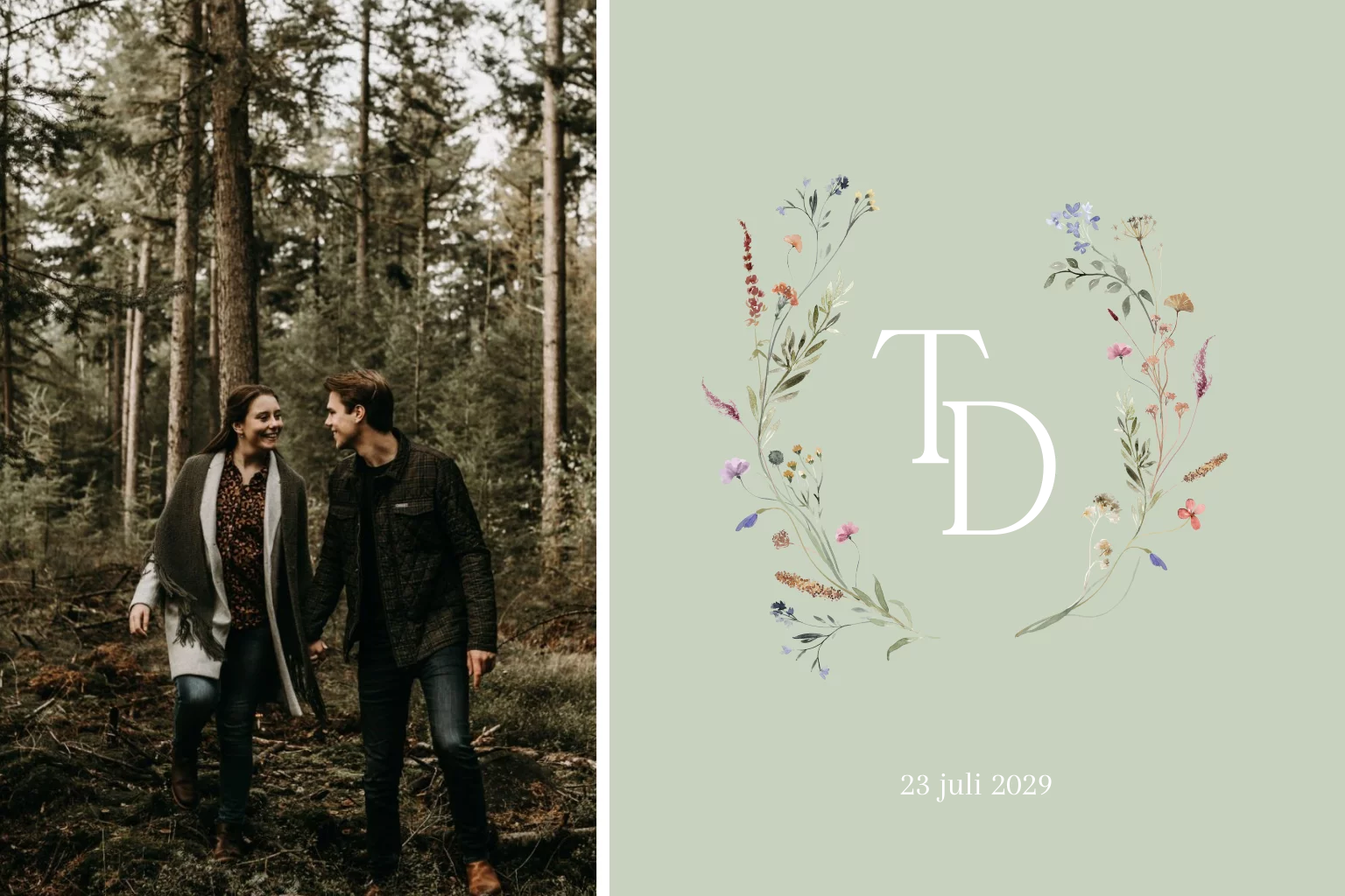 Stuur deze romantische Save the Date kaart om jullie trouwdatum te vermelden. Upload een foto, zodat je een persoonlijke Save the Date stuurt. Dit doe je gemakkelijk in de editor. Op de voorkant en achterkant van deze kaart wordt roséfolie gedrukt.Totaalprijs: 0 |