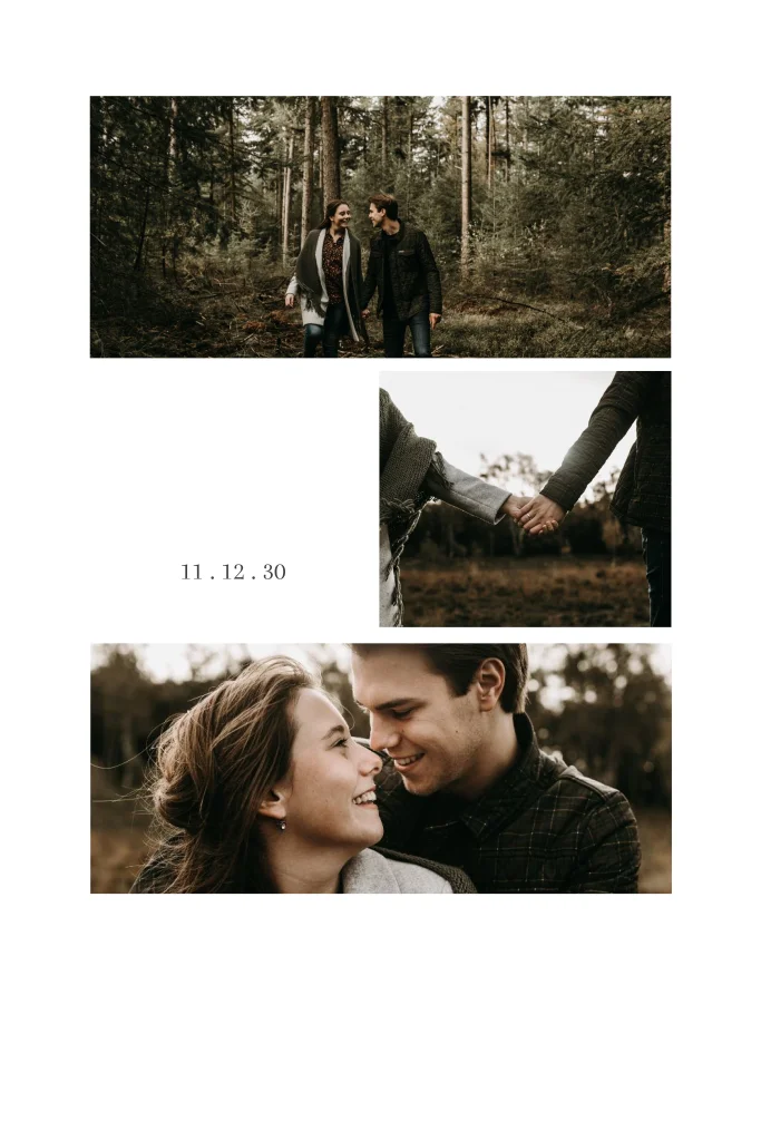 Maak een klassieke Save the Date kaart zodat gasten jullie trouwdatum alvast reserveren in hun agenda. Dit is een Save the Date met foto's; deze voeg je eenvoudig toe in de editor. De tekst wordt in goudfolie gedrukt, dit zorgt voor een chique look.